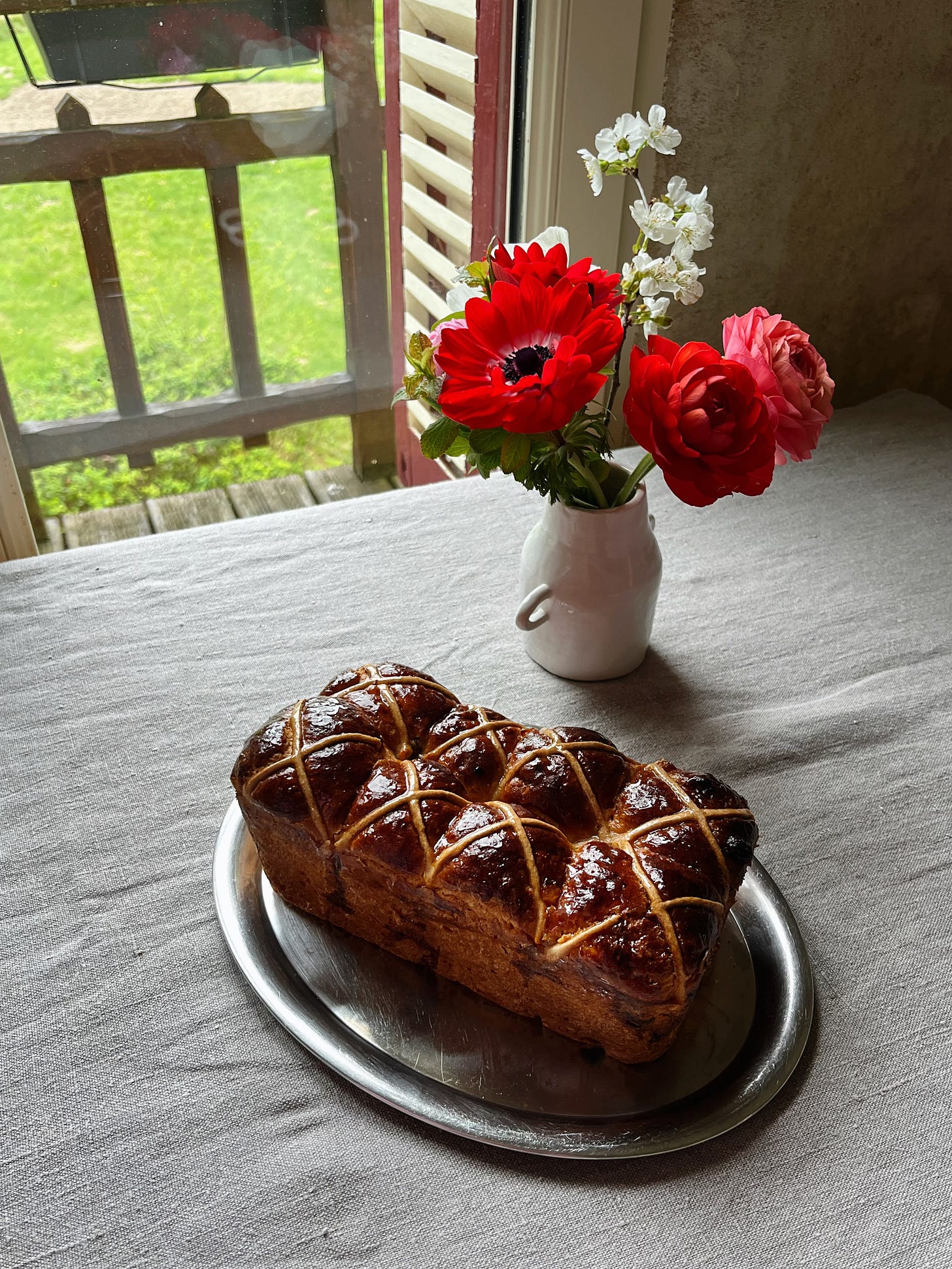 This hot cross loaf feels more like a recipe I wanted to create. An enriched dough carrying warmth with a little citrus, raisins, and dried apricots my mother sent from Iran folded in.